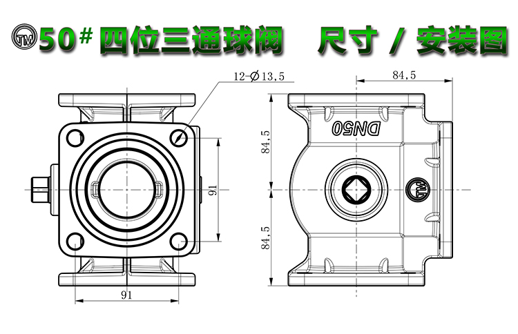 名稱:50鋁合金四位三通球閥